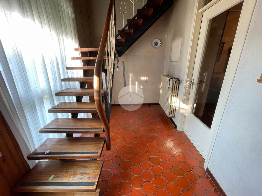 La soluzione, disposta su due livelli, è composta dalla zona giorno al piano terra che prevede l'ingresso su soggiorno, una cucina abitabile, una camera da letto e un ripostiglio; tramite scala interna accediamo al piano primo dove troviamo due camere da letto di cui una con portafinestra che conduce al terrazzo e un bagno finestrato con doccia.