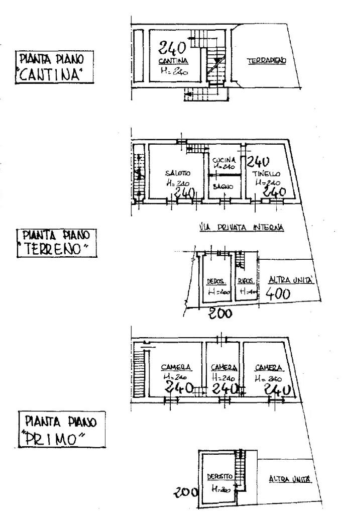 Al piano terra troviamo la zona giorno composta da un cucinotto con tinello, un'ampio soggiorno e un bagno; tramite scala esterna accediamo al primo piano dove troviamo la zona notte composta da tre camere da letto.