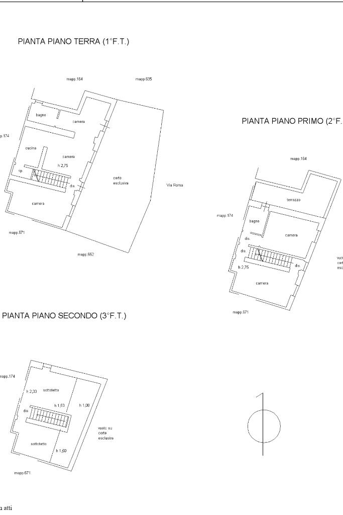 Tramite scala interna accediamo al piano primo dove troviamo un disimpegno, due camere da letto matrominiali, un bagno e un terrazzo; sempre tramite scala interna accediamo anche al piano mansardato dove troviamo due locali sottotetto.
