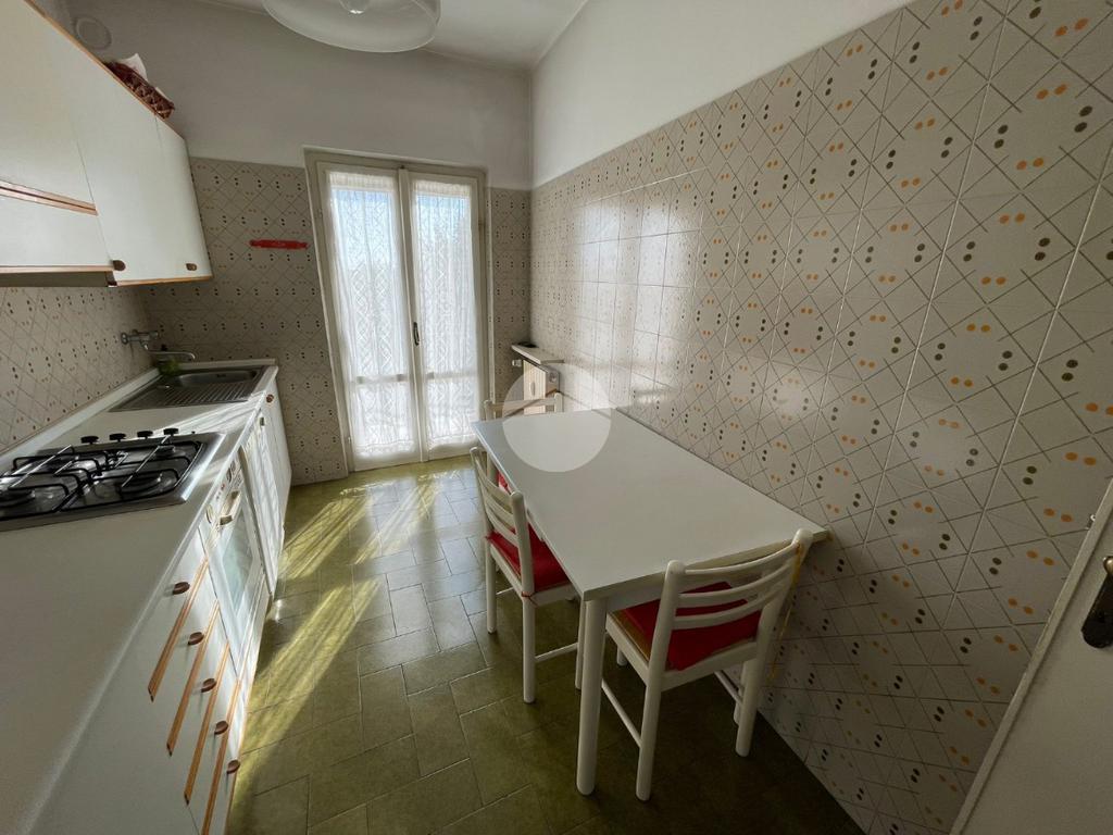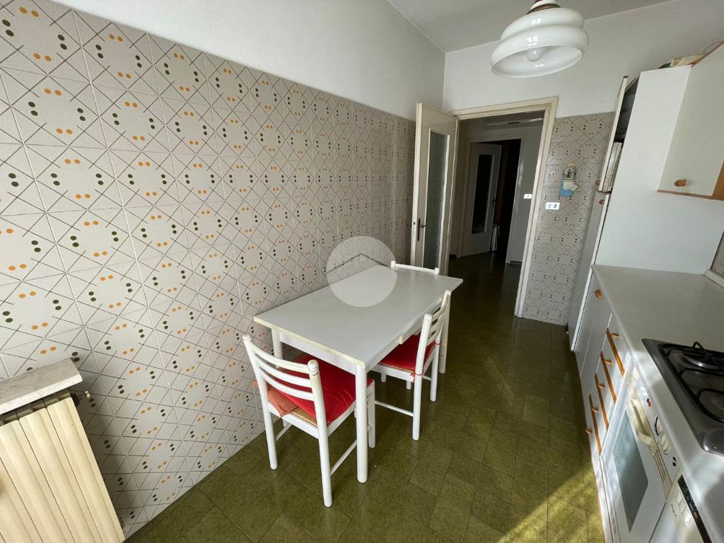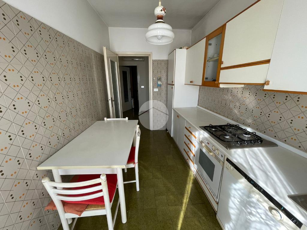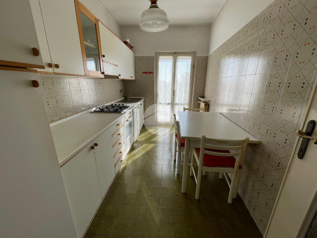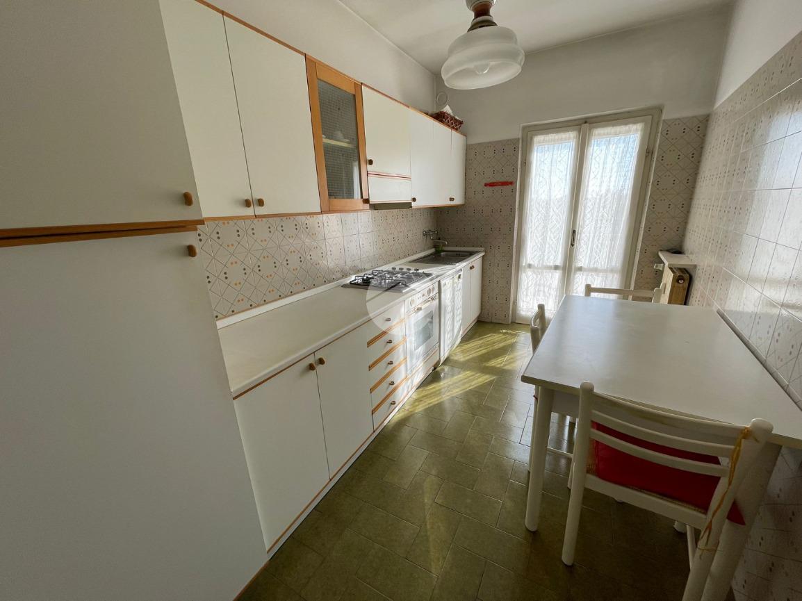 L'ingresso si apre sulla zona giorno composta da un ampio e luminoso soggiorno provvisto di balcone e accesso ad ampio terrazzo, una cucina abitabile con portafinestra che conduce ad un secondo balcone e un ripostiglio.