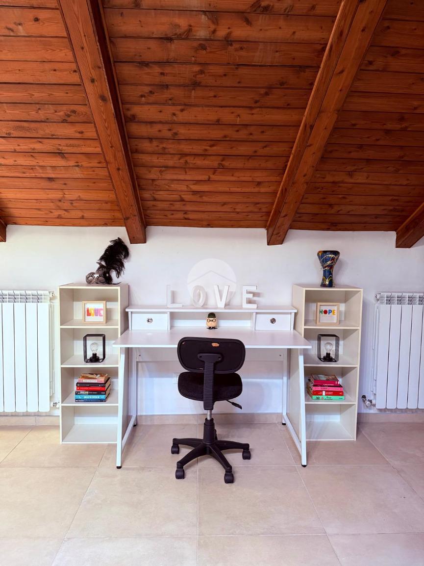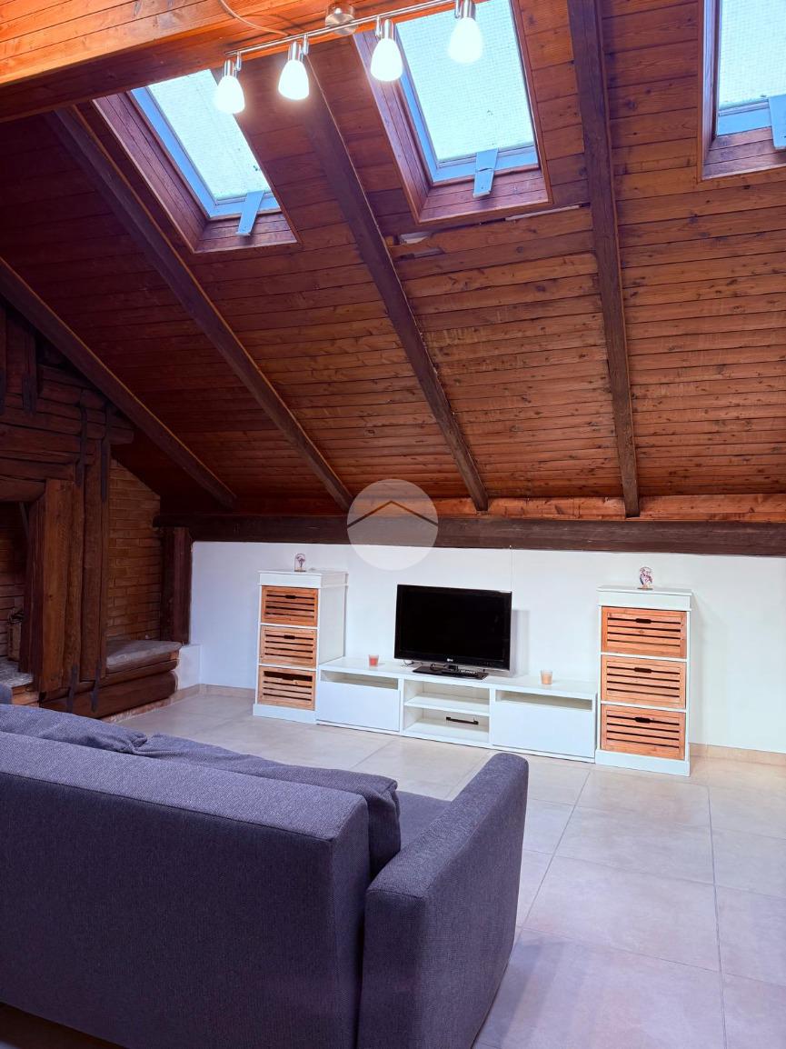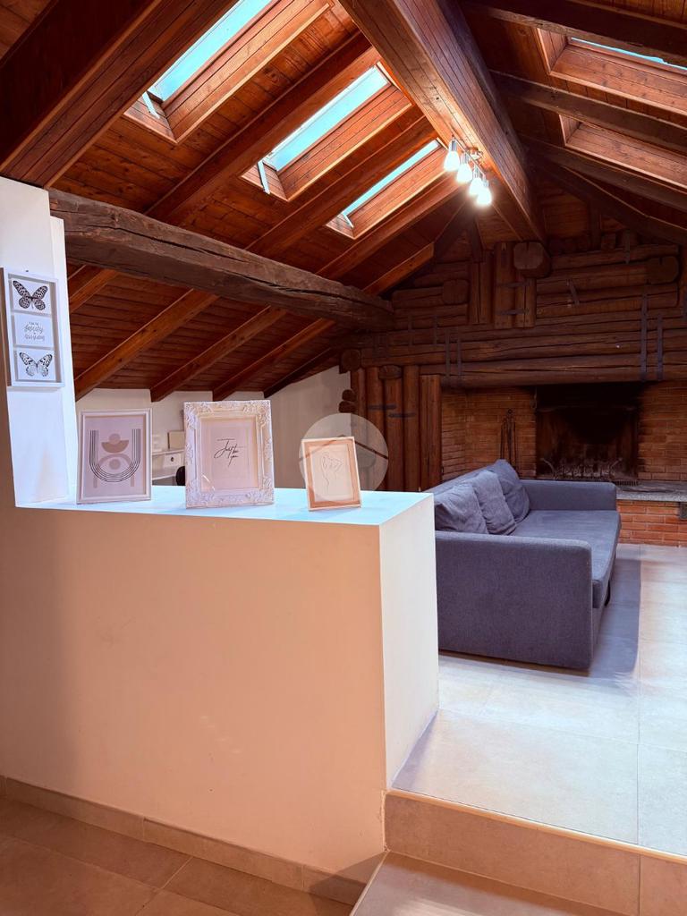 L'appartamento è composto da un unico ampio locale dove troviamo la zona soggiorno caratterizzata da un bellissimo camino, una cucina a vista, una zona notte con letto matrimoniale e un bagno con la doccia.