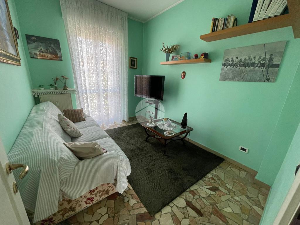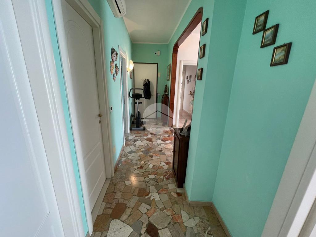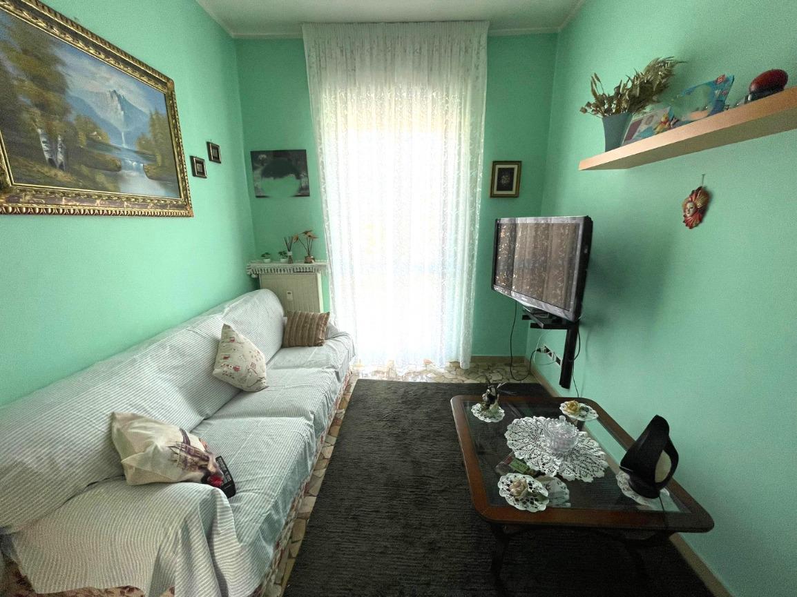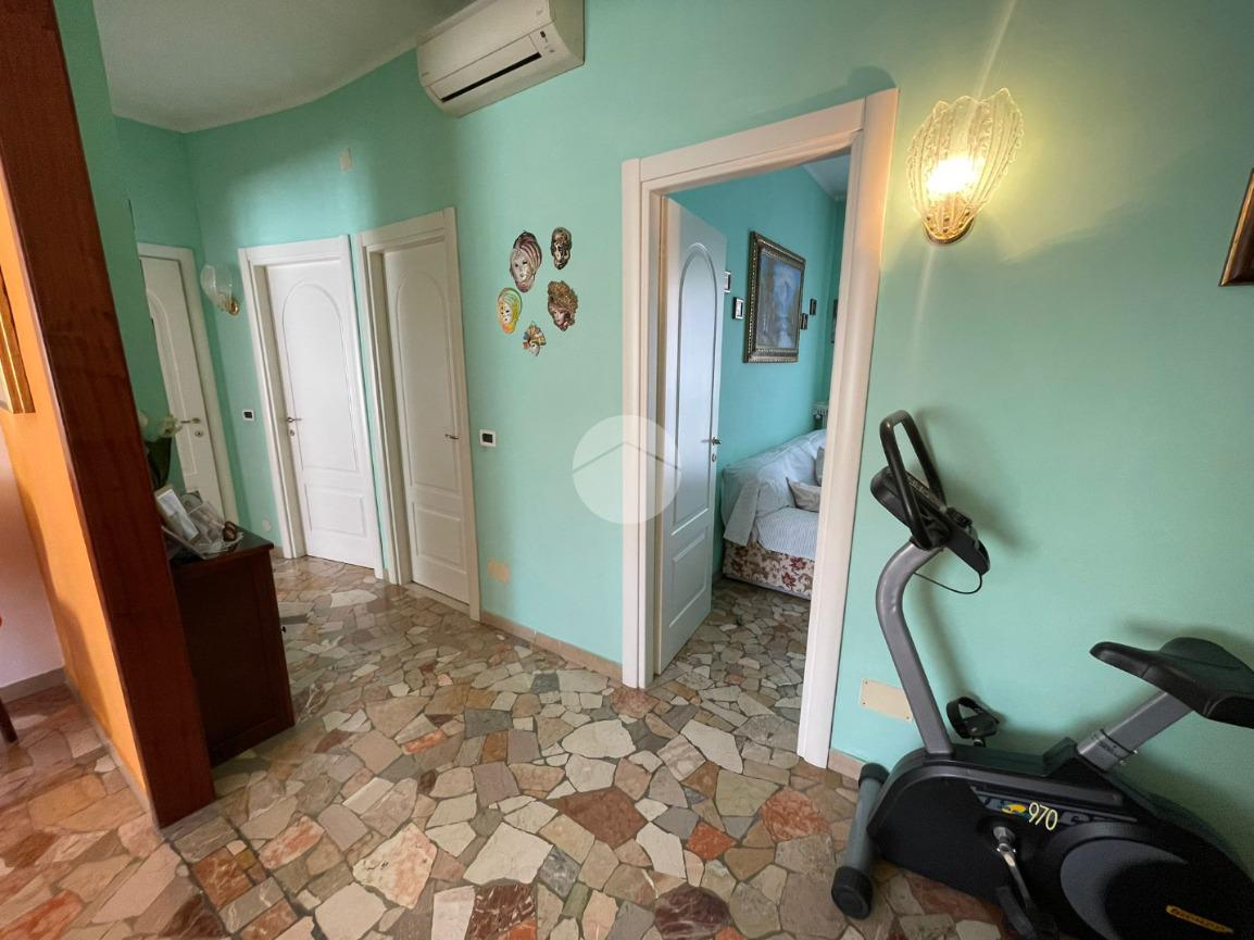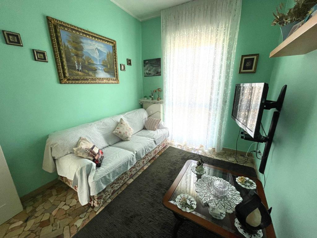 L'alloggio, posto al terzo ed ultimo piano senza ascensore, ha l'ingresso che si apre su un disimpegno che conduce alla zona giorno composta da un'ampia cucina abitabile con portafinestra che conduce al primo balcone, una sala e un bagno con vasca.