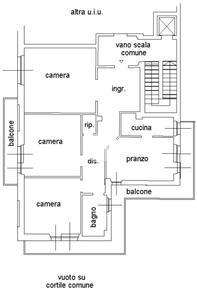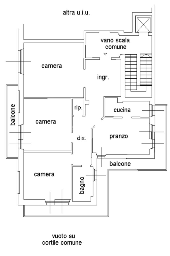 L'alloggio, posto al quarto ed ultimo piano con ascensore, è composto da ingresso su un spazioso disimpegno che conduce alla zona giorno dove troviamo un'ampia sala e cucinino con tinello.