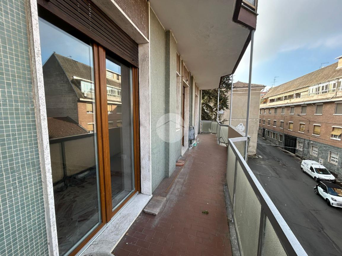 L'ingresso, tramite porta blindata, si apre sul corridoio che conduce alla zona giorno composta da una sala con accesso al balcone che collega tutte le stanze e una cucina abitabile con portafinestra che conduce allo stesso balcone.
