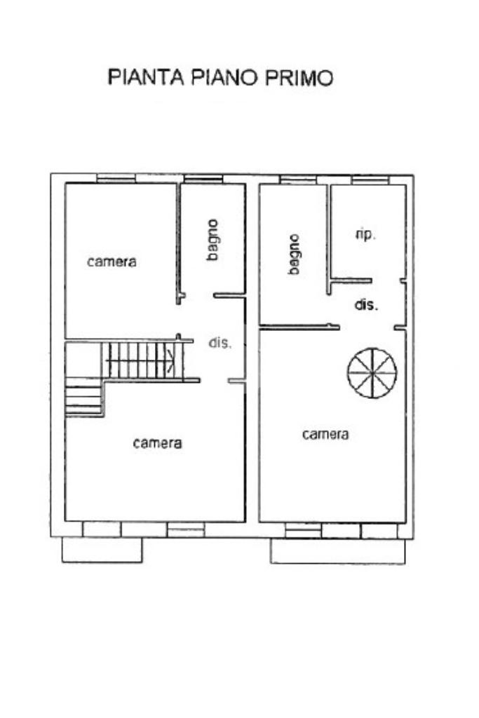 Al primo piano, invece, troviamo la zona notte composta da tre camere da letto matrimoniali, un ripostiglio e doppi servizi, uno con doccia e l'altro con vasca.
